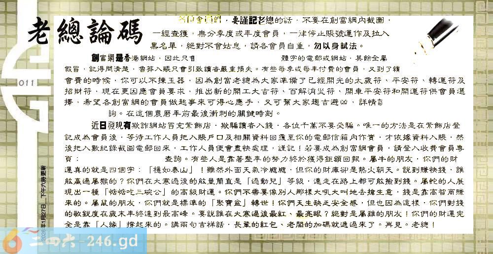六合彩011期:六合皇金句/老总论码/萧公子/林大师/五行夺码/老总信箱截图