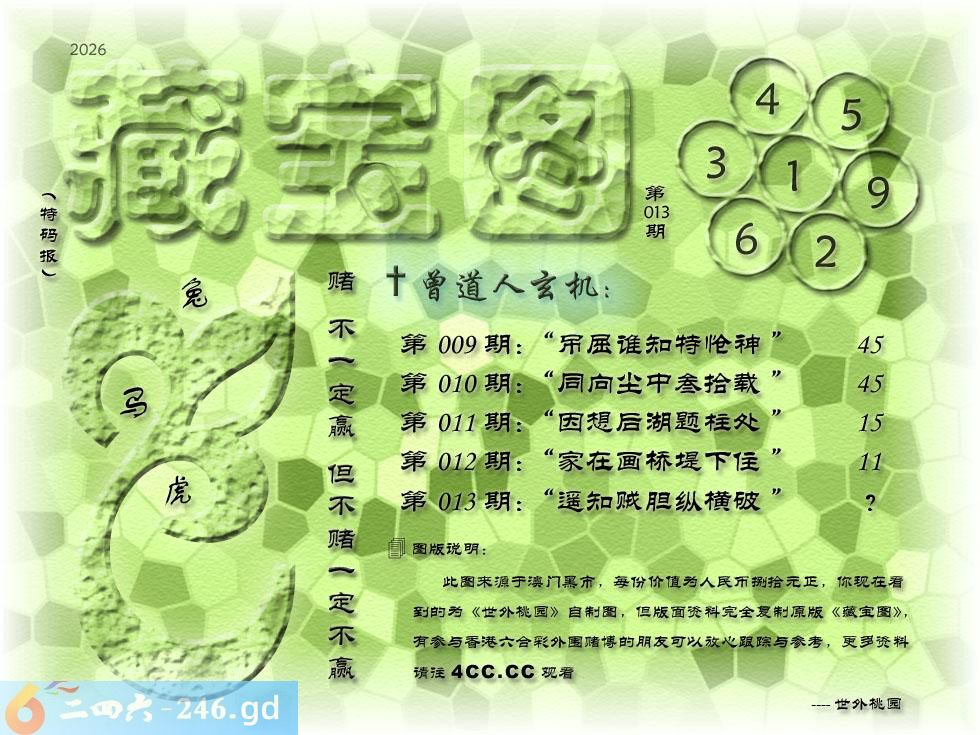 013期藏寶圖 新:遥知贼胆纵横破 老:锦树摧残蝴蝶老 禁:鼠禁:0尾玄機字:《虚》
