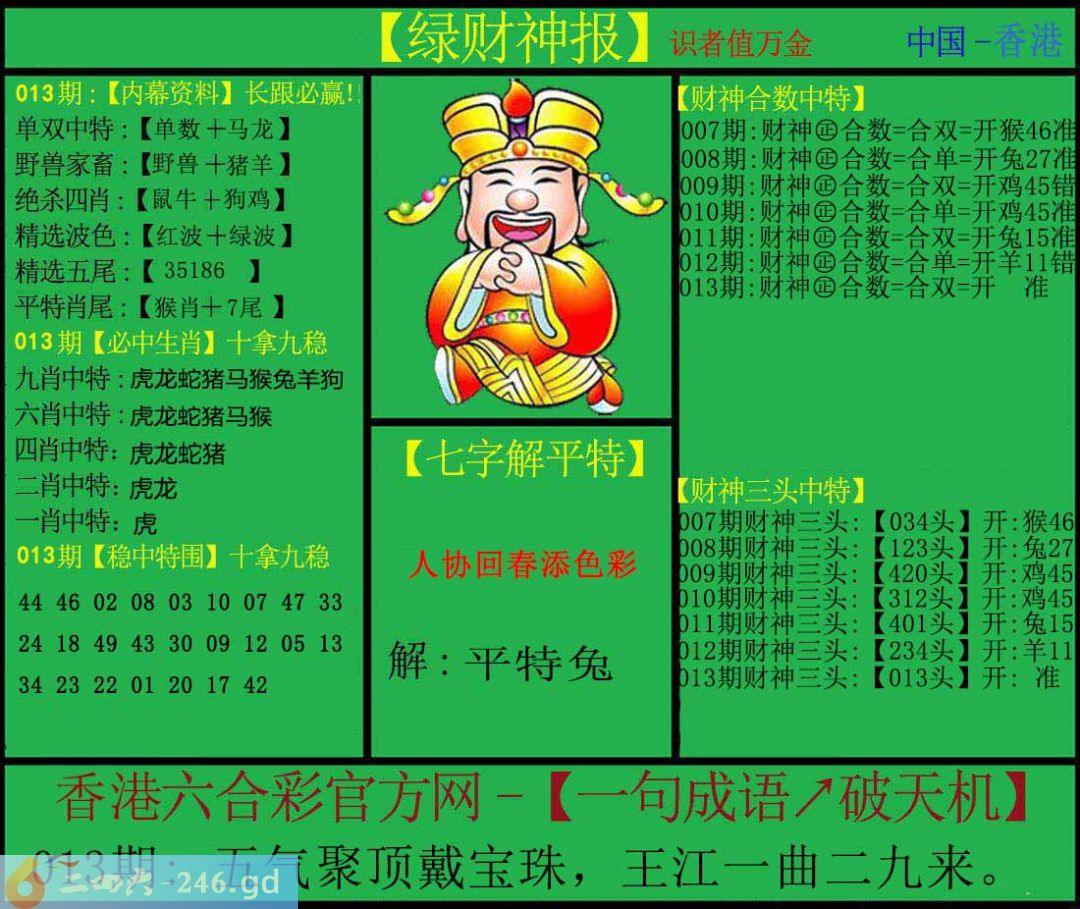 六合彩013期:绿色财神
