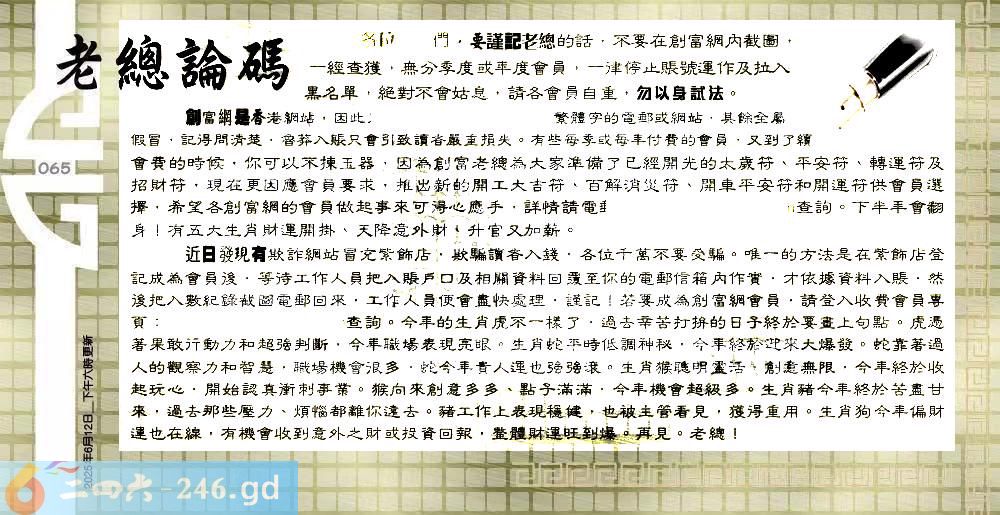 六合彩065期:六合皇金句/老总论码/萧公子/林大师/五行夺码/老总信箱截图