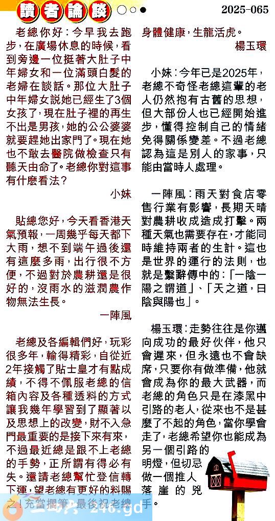 第零六五期讀者論談