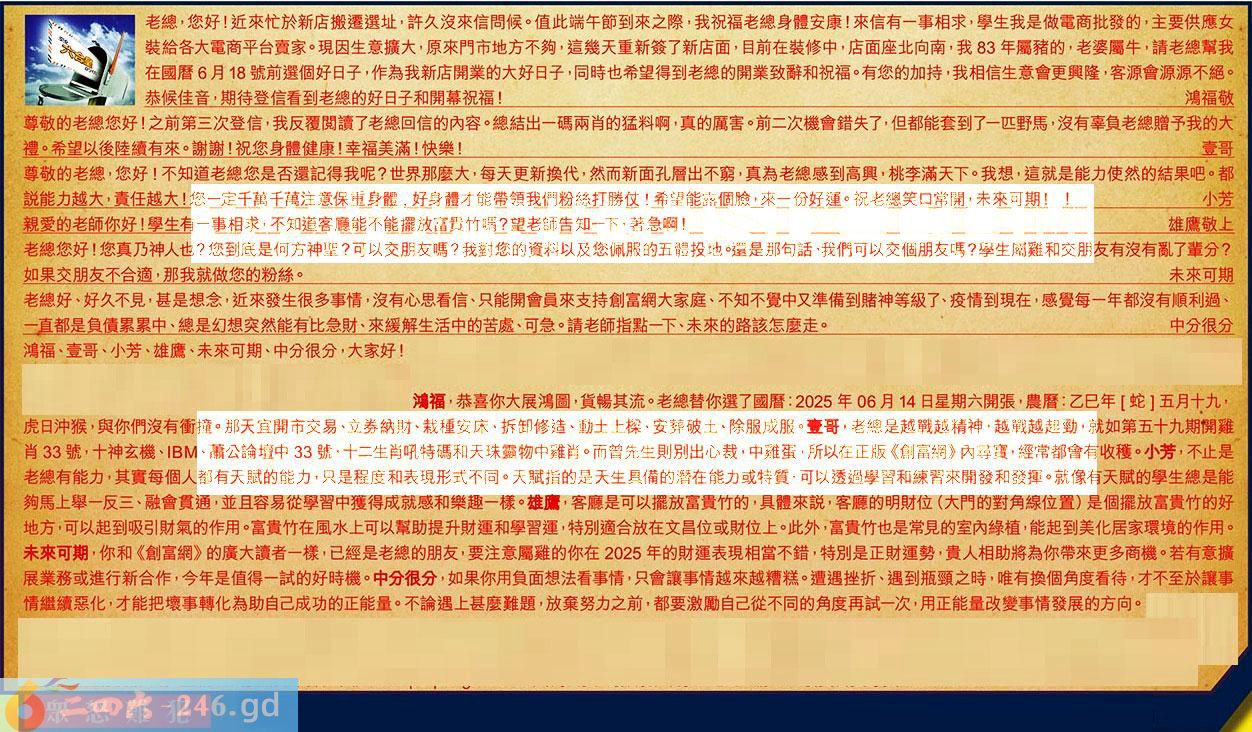 〖未來可期〗:你和《創富網》的廣大讀者一樣,已經是老總的朋友,要注意屬雞的你在2025年的財運表現相當不錯,特別是正財運勢,贵人相助將為你帶來更多商機。若有意擴展業務或進行新合作,今年是值得試的好時機。