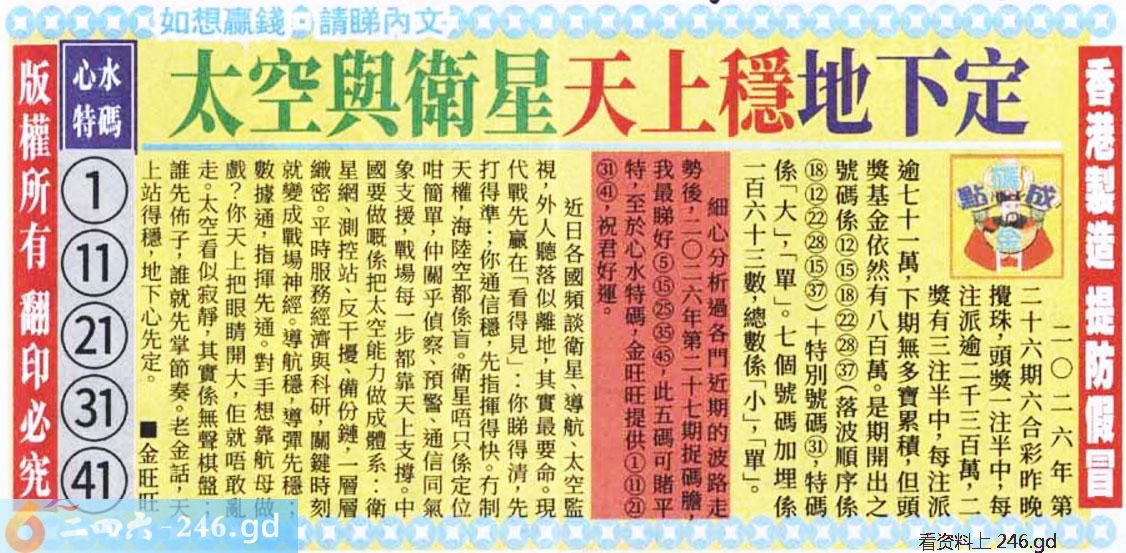 六合彩027期太子报(彩)(黑白)