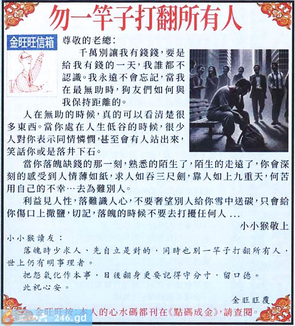 六合彩027期:金旺旺信箱彩民推荐→→《勿一竿子打翻所有人》