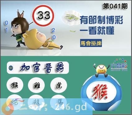 041期正版彩图挂:33爆:猴挂牌成语:加官晋爵挂牌出肖:猴鸡虎蛇龙马正版数码挂牌:25射:4734壹句真言:二月春期看己半(24568)四柱《春雨绵绵好诗意》开奖时间:04月16日(星期四.猴冲虎)21:30分搅珠! [释义]加封官阶,晋升爵位。