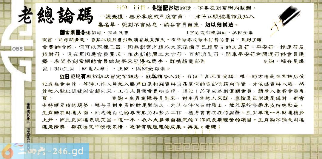 六合彩058期:六合皇金句/老总论码/萧公子/林大师/五行夺码/老总信箱截图