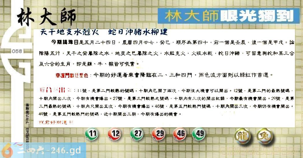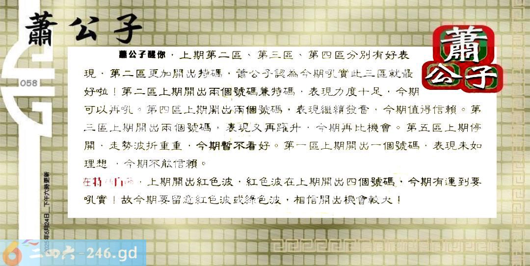 六合彩【058期】内部来料(单笔双笔发表区)已公开】