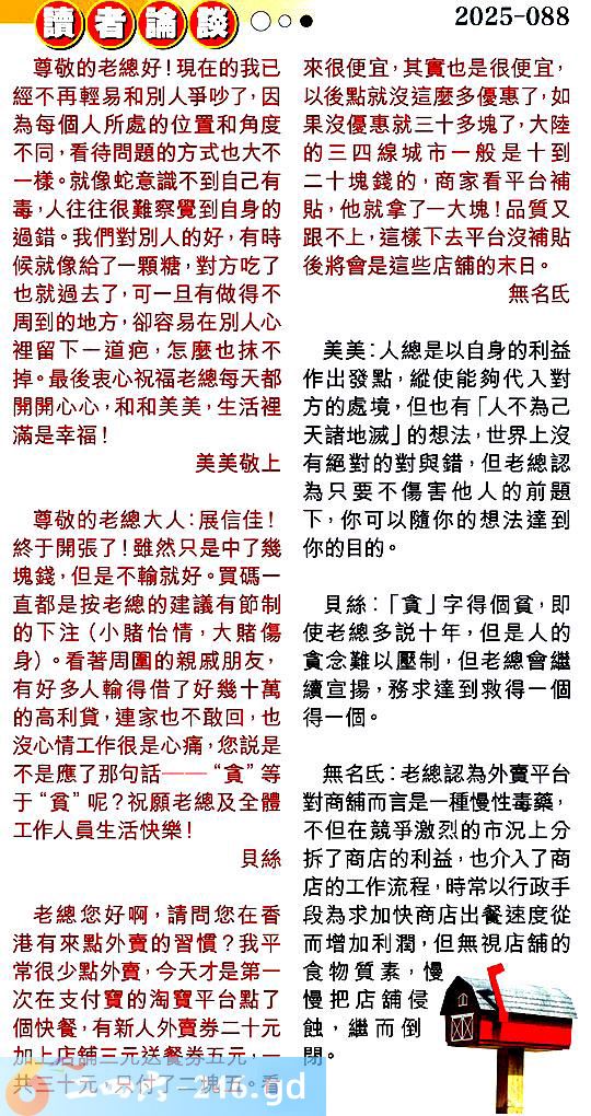 第零八八期讀者論談