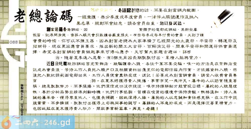 六合彩088期:六合皇金句/老总论码/萧公子/林大师/五行夺码/老总信箱截图
