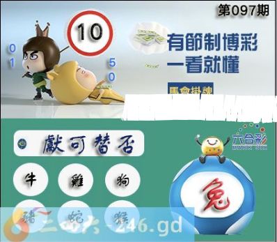 097期正版彩图挂:10爆:兔挂牌成语:献可替否挂牌出肖:牛鸡狗猪蛇猴正版数码挂牌:42射:0327壹句真言:喜遇慈闱年八十(23579)四柱《莺歌燕舞画图中》开奖时间:09月06日(星期六.虎冲猴)21:30分搅珠![释义]指劝善归过,提出兴革的建议。香港挂牌