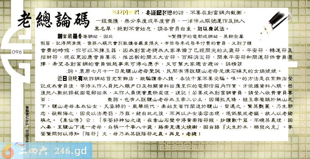 六合彩096期:六合皇金句/老总论码/萧公子/林大师/五行夺码/老总信箱截图