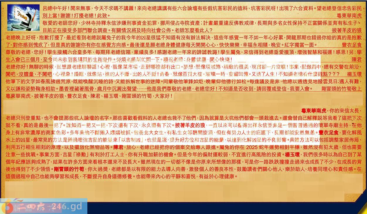 〖粤東華南虎〗:你的來信太長,老總只刊登重點,也不會提那些坑人論壇的名字。那些喜歡看假料的人老總也救不了他們,因為就算是火坑他們都會一頭栽進去。還會替自己解釋說等我看了這把下次就不看,真的是最後一把了誰知道一把又一把,下次還有下次,永久還有下次。