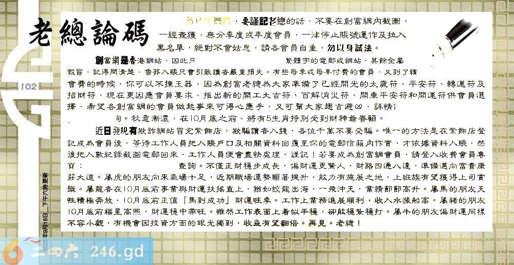 六合彩102期:六合皇金句/老总论码/萧公子/林大师/五行夺码/老总信箱截图