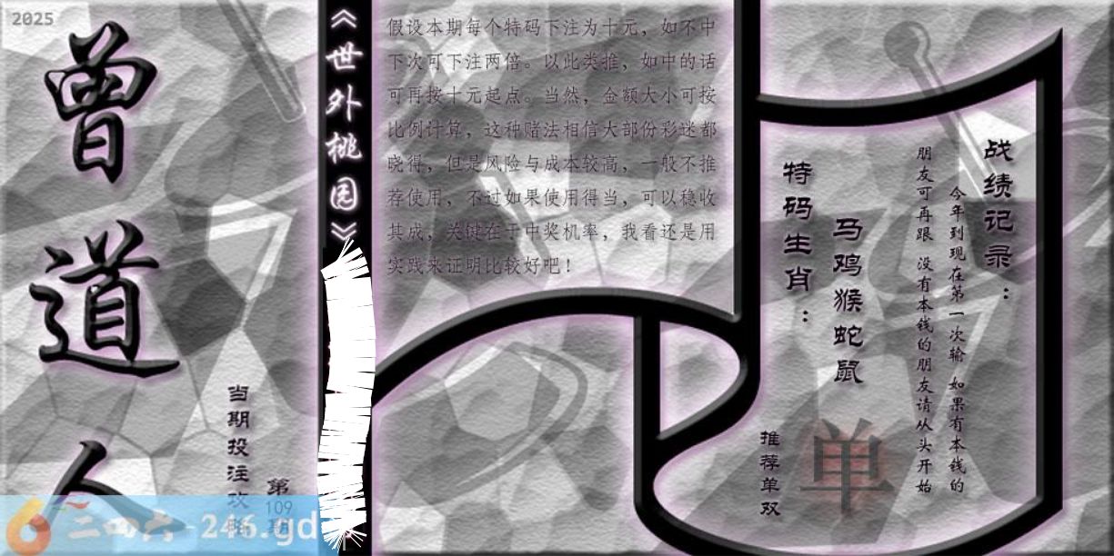 六合彩109期:鬼谷诗正版鬼谷先生
