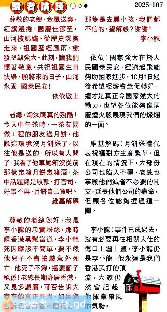 〖李小龍〗:事件已成過去,沒有必要再在相關人仕的傷口上灑上鹽,李小龍仍是李小龍,他永遠是我們香港武打的頂流,大家仍金然會記起他揮拳帶風的氣勢。
