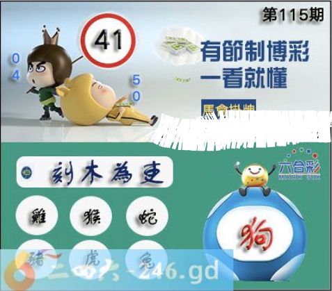 115期正版彩图挂:41爆:狗挂牌成语:刻木为吏挂牌出肖:鸡猴蛇猪虎兔正版数码挂牌:28射:3547壹句真言:夜水浅急不可越(23568)四柱《男不着丁女在舍》开奖时间:10月25日(星期六.兔冲鸡)21:30分搅珠![释义]意思是不能受狱吏的污辱,即使是木头做的狱吏也不能见他。形容狱吏的凶暴可畏。香港挂牌