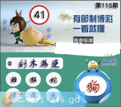 115期正版彩图挂:41爆:狗挂牌成语:刻木为吏挂牌出肖:鸡猴蛇猪虎兔正版数码挂牌:28射:3547壹句真言:夜水浅急不可越(23568)四柱《男不着丁女在舍》开奖时间:10月25日(星期六.兔冲鸡)21:30分搅珠![释义]意思是不能受狱吏的污辱,即使是木头做的狱吏也不能见他。形容狱吏的凶暴可畏。