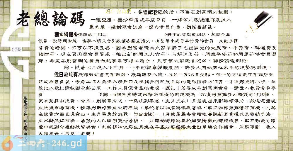 六合彩115期:六合皇金句/老总论码/萧公子/林大师/五行夺码/老总信箱截图