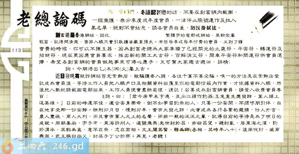 六合彩113期:六合皇金句/老总论码/萧公子/林大师/五行夺码/老总信箱截图