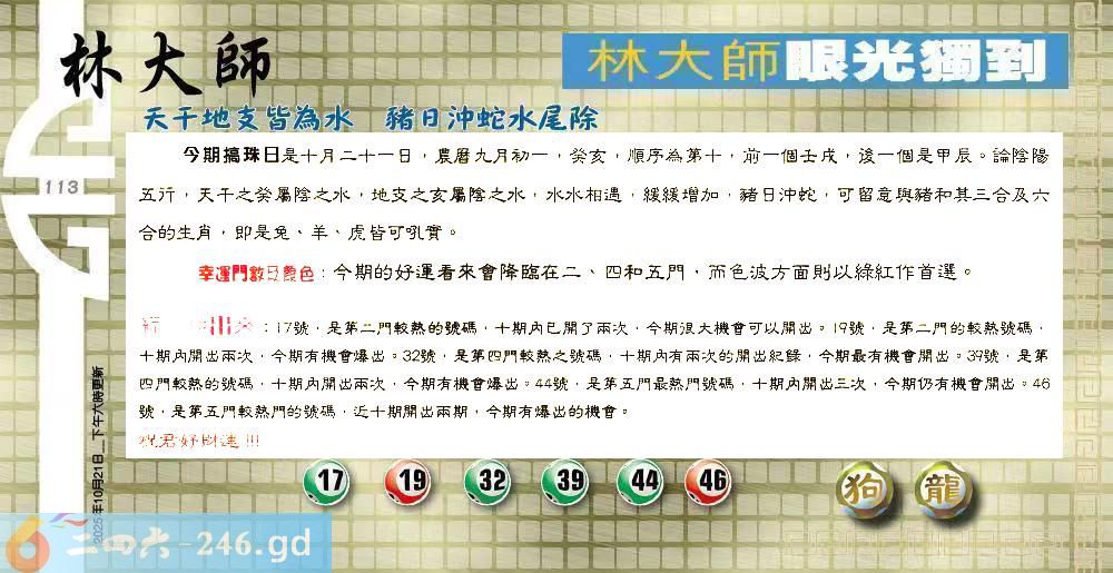 六合彩【113期】内部来料(单笔双笔发表区)已公开】