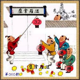 060期正版彩图挂牌 【红灯笼】:挂32 〖四字〗:鹰拿雁捉 〖六肖〗:虎马鸡蛇牛猴 〖门数〗:0.5门 〖火烧〗:牛 【词目】:鹰拿雁捉 【拼音】: ī á à ō 【解释】:意思是比喻缉捕时的快速凶猛。。 【出自】:《平山冷燕》第五回。 【示例】:圣旨一下,早有锦衣卫官已将窦国一、宋信鹰拿雁捉的拖了出来。 【语法】:作定语;比喻捉拿毫不费力