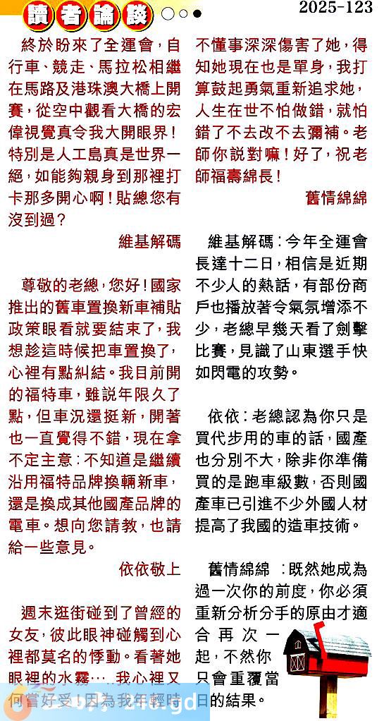 第一二三期讀者論談