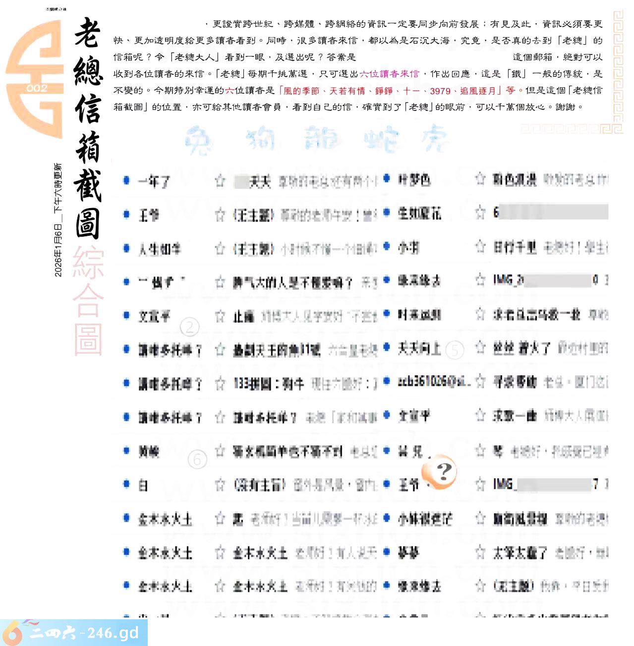 六合彩002期:六合皇金句/老总论码/萧公子/林大师/五行夺码/老总信箱截图
