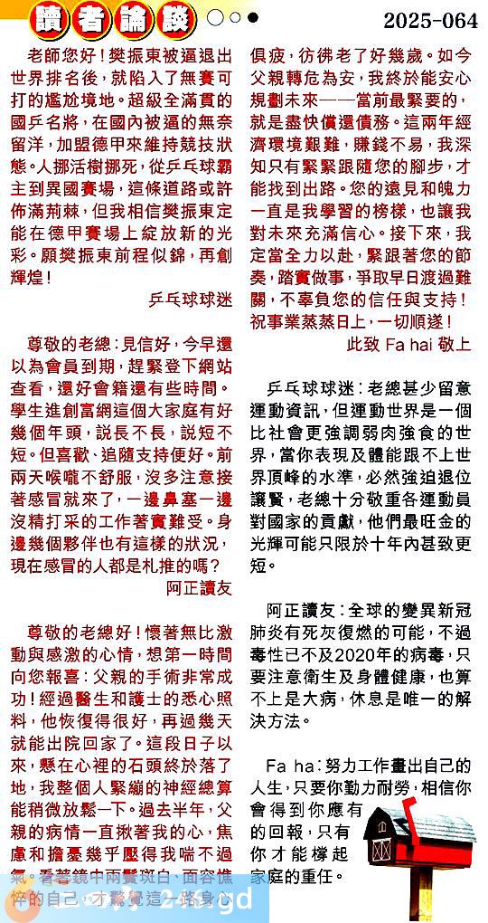 第零六四期讀者論談