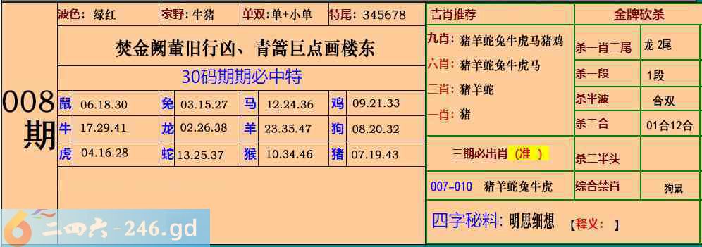 六合彩008期:30码期期特