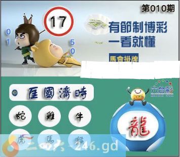 六合彩010期正版彩图挂:17 爆:龙 挂牌成语:匡国济时 挂牌出肖:蛇鸡牛虎马猴
