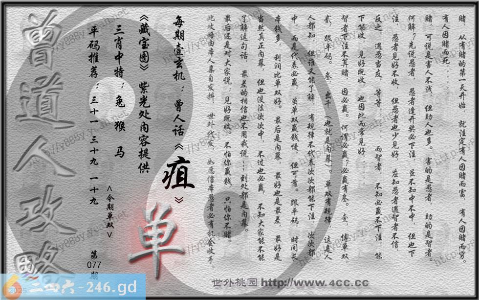 六合彩077期藏寶圖 新:自笑未曾同逸步 老:北洲何处是通汗 禁:鸡 禁:3尾 玄機字:《疽》