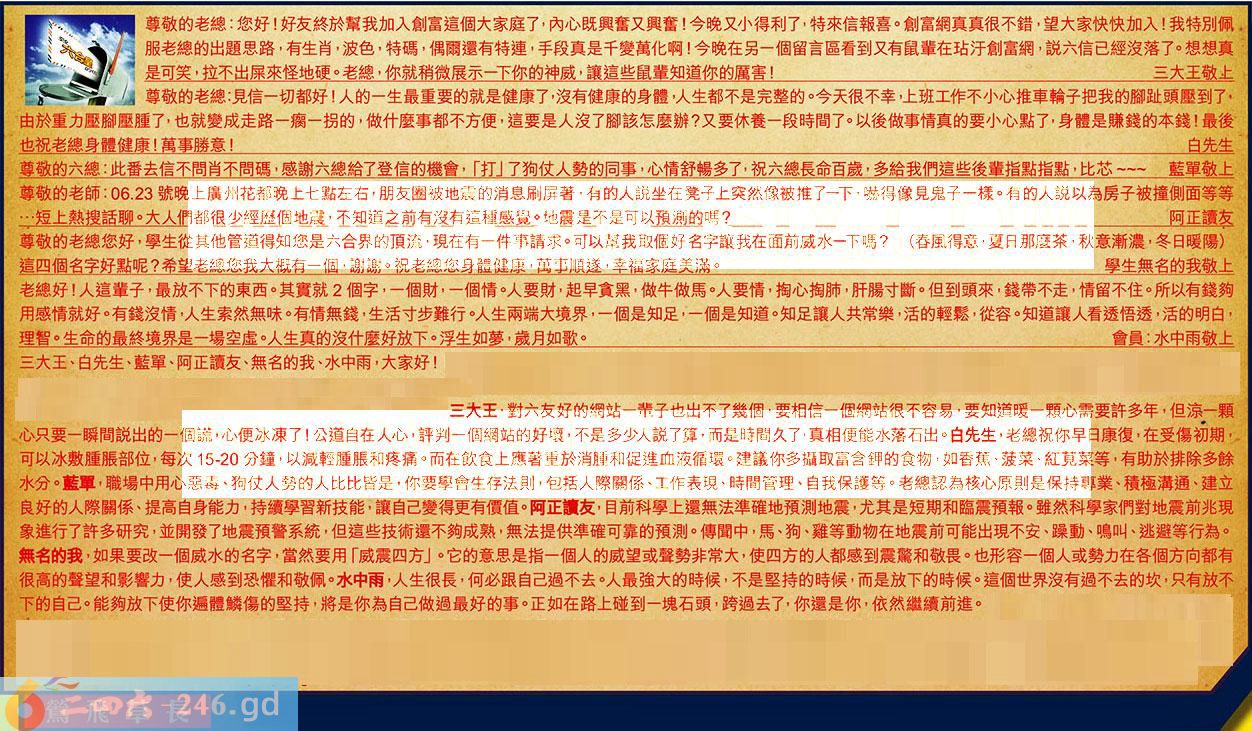三大王、白先生、藍單、阿正讀友、無名的我、水中雨,大家好!