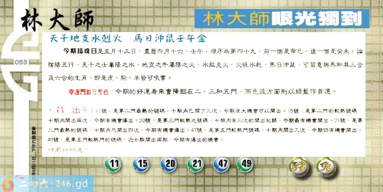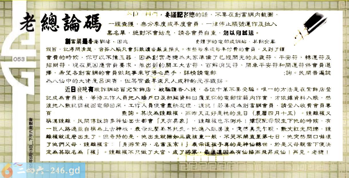 六合彩053期:六合皇金句/老总论码/萧公子/林大师/五行夺码/老总信箱截图