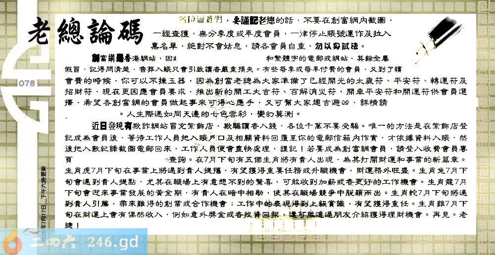 六合彩078期:六合皇金句/老总论码/萧公子/林大师/五行夺码/老总信箱截图