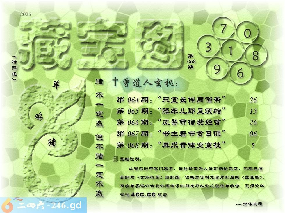 068期藏寶圖 新:再求青律变寒枝 老:差夫持道挽丧车 禁:蛇禁:2尾玄機字:《漭》