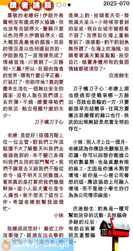 第零七零期讀者論談