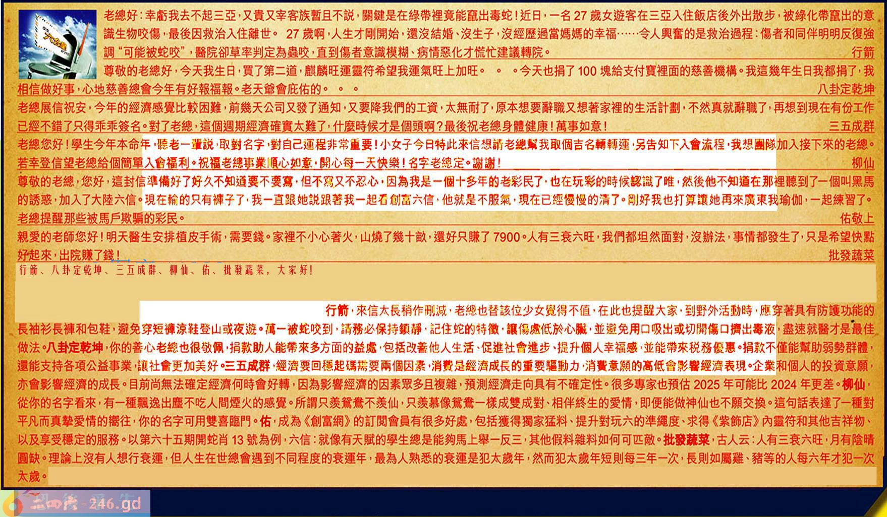 第070期《六合皇信箱文字版》10000%正確!!!正版二四六論壇*精心製作!!!