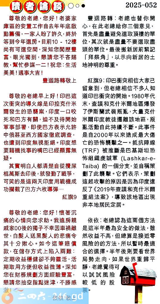 第零五二期讀者論談