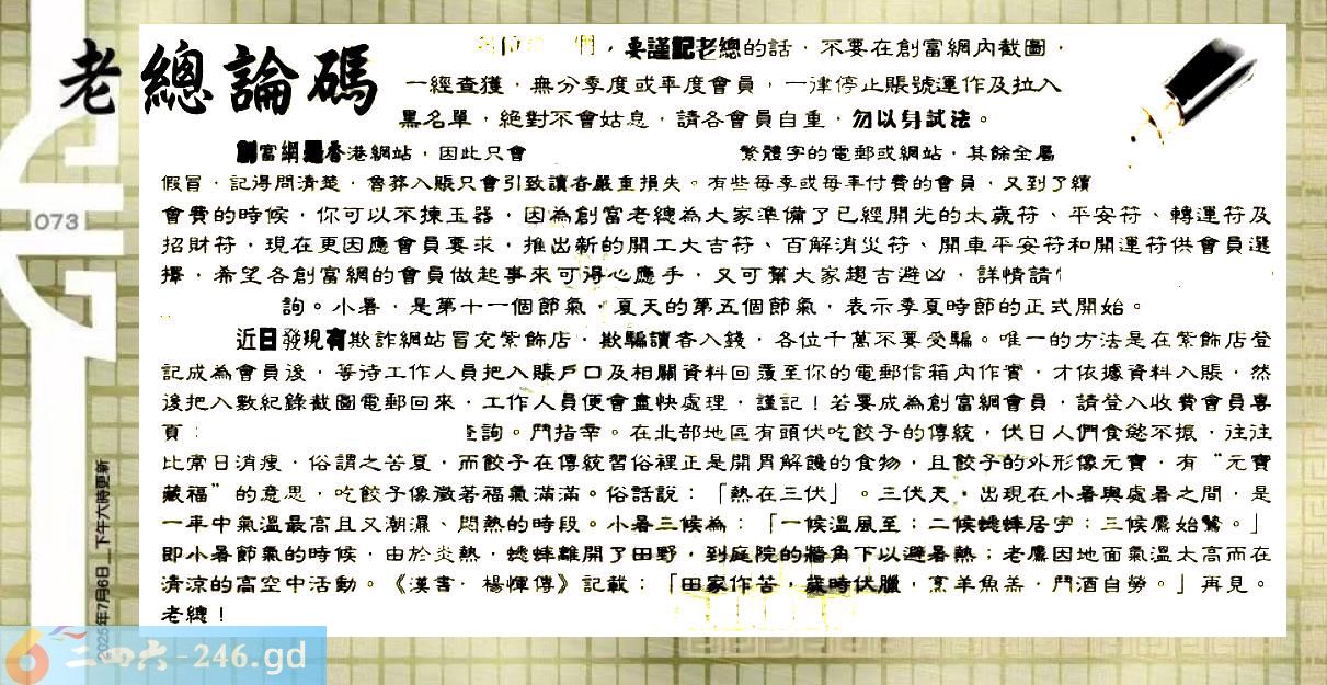 六合彩073期:六合皇金句/老总论码/萧公子/林大师/五行夺码/老总信箱截图