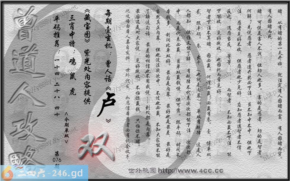 六合彩076期:彩民推荐六合皇信箱(紅字:柳影花陰)