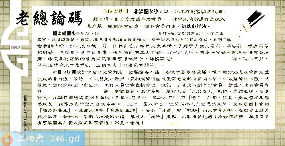 六合彩052期:六合皇金句/老总论码/萧公子/林大师/五行夺码/老总信箱截图