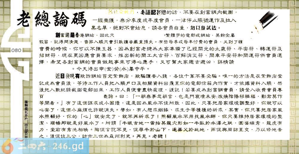 六合彩080期:六合皇金句/老总论码/萧公子/林大师/五行夺码/老总信箱截图