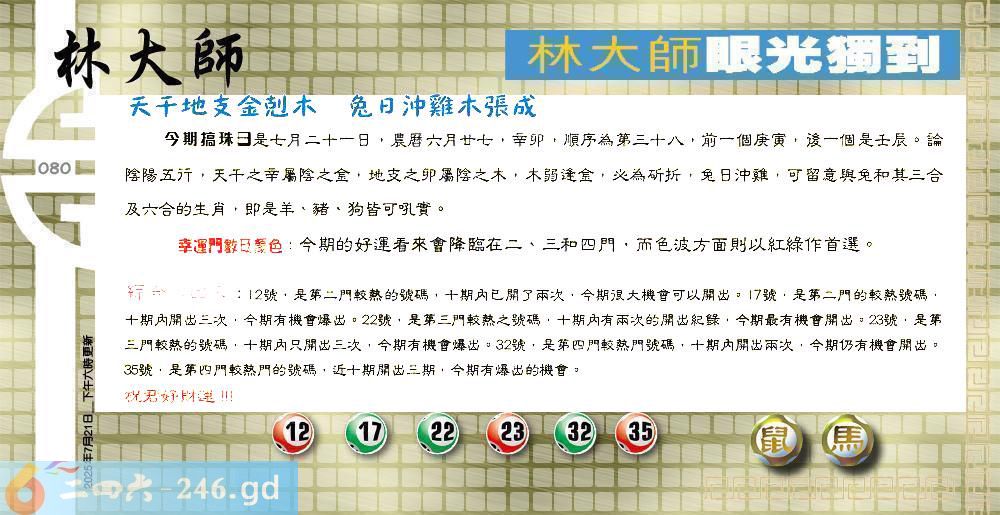 六合彩080期:更新100%〓2025乙已年香港掛牌之全篇(图库版)