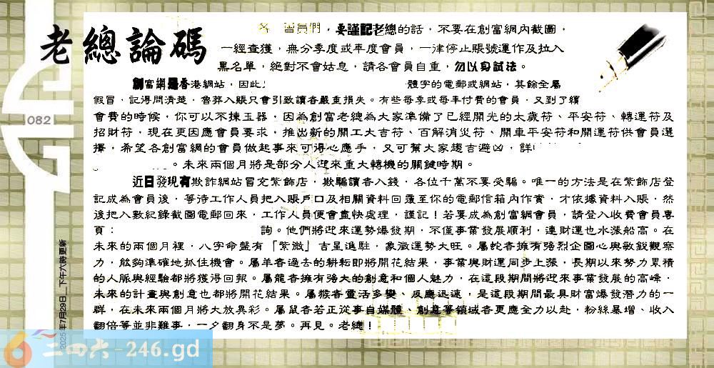 六合彩082期:六合皇金句/老总论码/萧公子/林大师/五行夺码/老总信箱截图