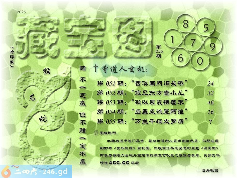 六合彩055期藏寶圖 新:万思千缕太多情 老:美人折向庭前过 禁:羊 禁:2尾 玄機字:《雪》