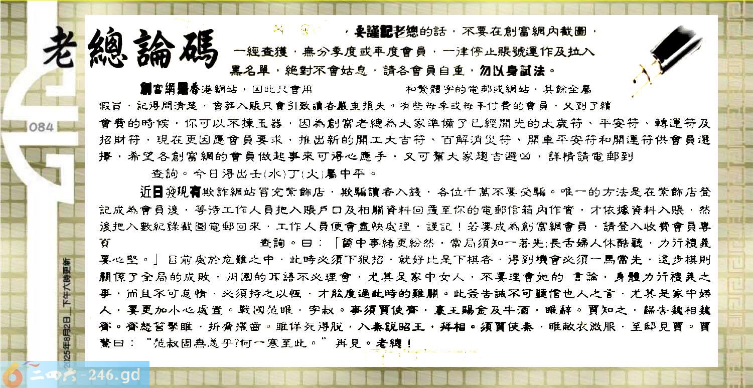 六合彩084期:六合皇金句/老总论码/萧公子/林大师/五行夺码/老总信箱截图