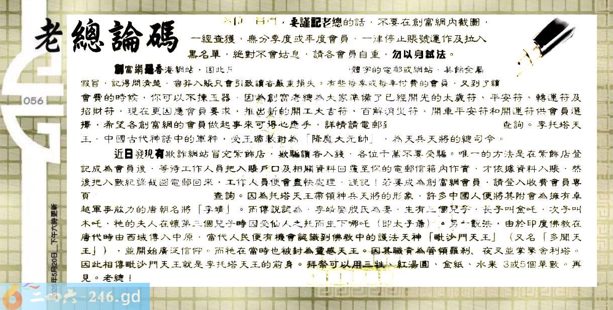六合彩056期:六合皇金句/老总论码/萧公子/林大师/五行夺码/老总信箱截图